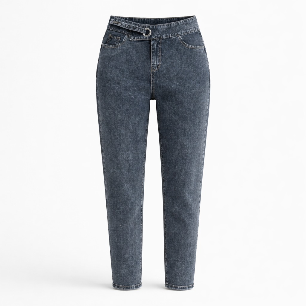 Jeans dengan signature waist design yang bikin look kamu langsung naik level. Didesain dengan high waist + layered waistband detail (belt look dengan ring accent) yang memberikan efek pinggang lebih ramping sekaligus statement look yang berbeda dari jeans biasa. Pilihan warna Snowblue dan Snowblack memberikan kesan clean, sleek, dan versatile — cocok untuk semua gaya, dari casual sampai semi-formal. Material denim premium dengan stretch ringan, nyaman dipakai tanpa mengorbankan bentuk.