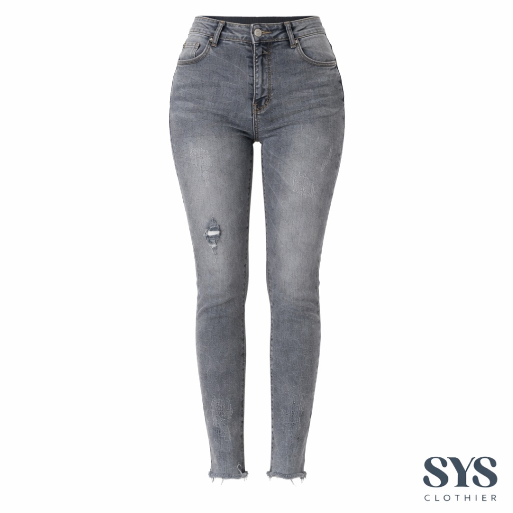 Sys Clothier Grey Bahama Jeans Wanita l High Waist Slim Fit Ripped Denim Premium (Size 27-31)