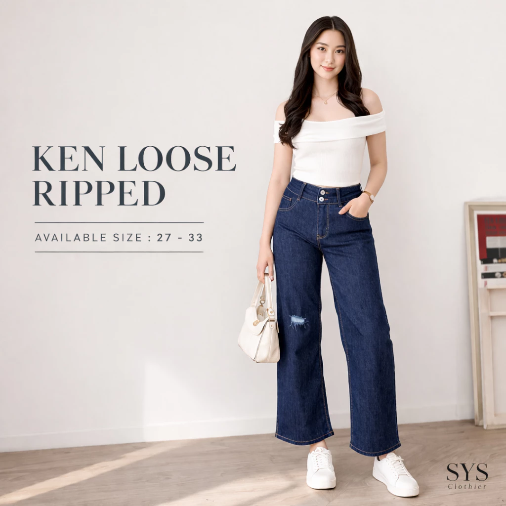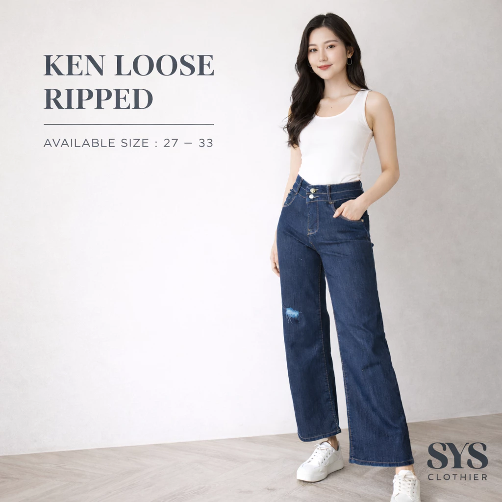 SYS Clothier Ken Loose Ripped Jeans I Celana High Waist Denim Wanita Premium (Size 27-33)