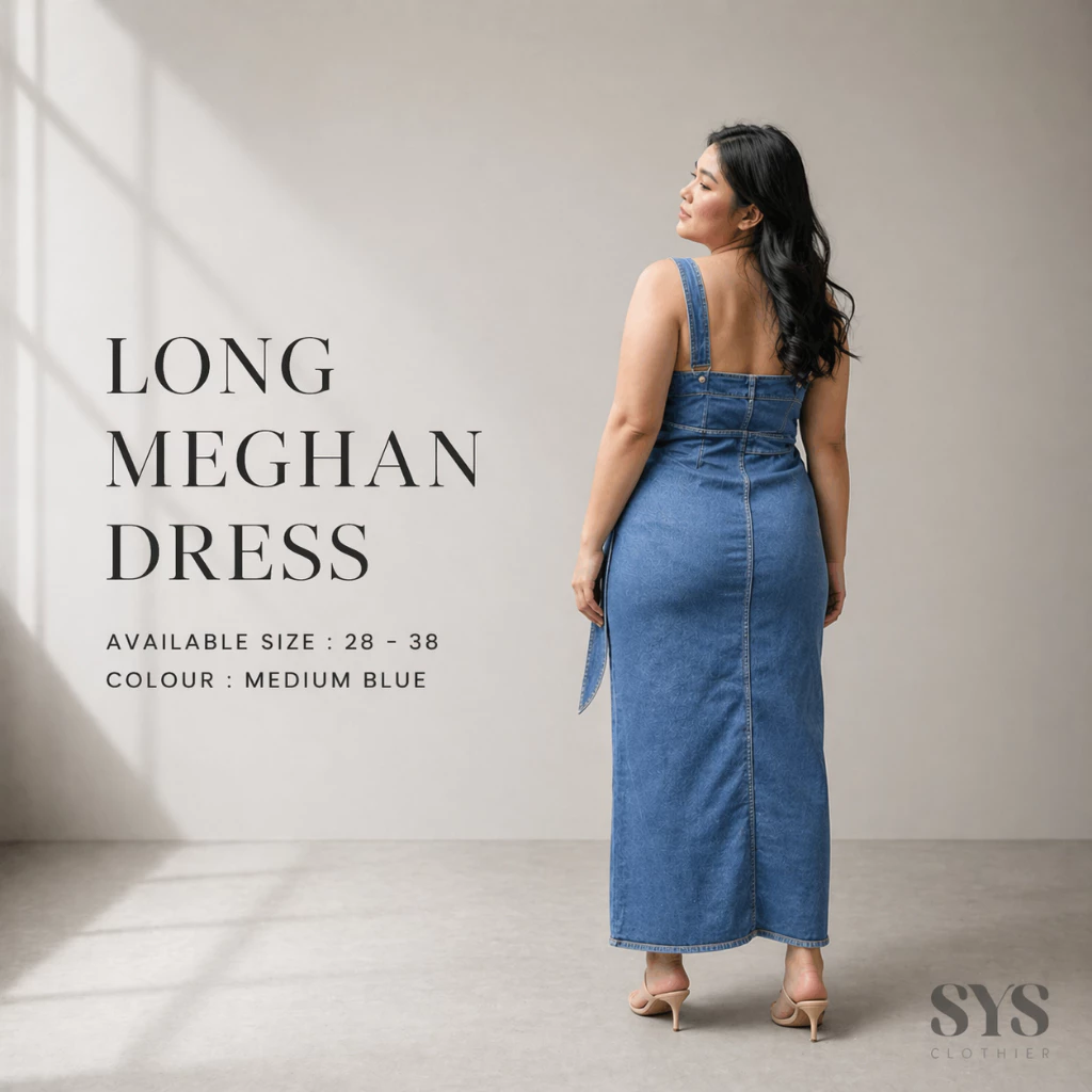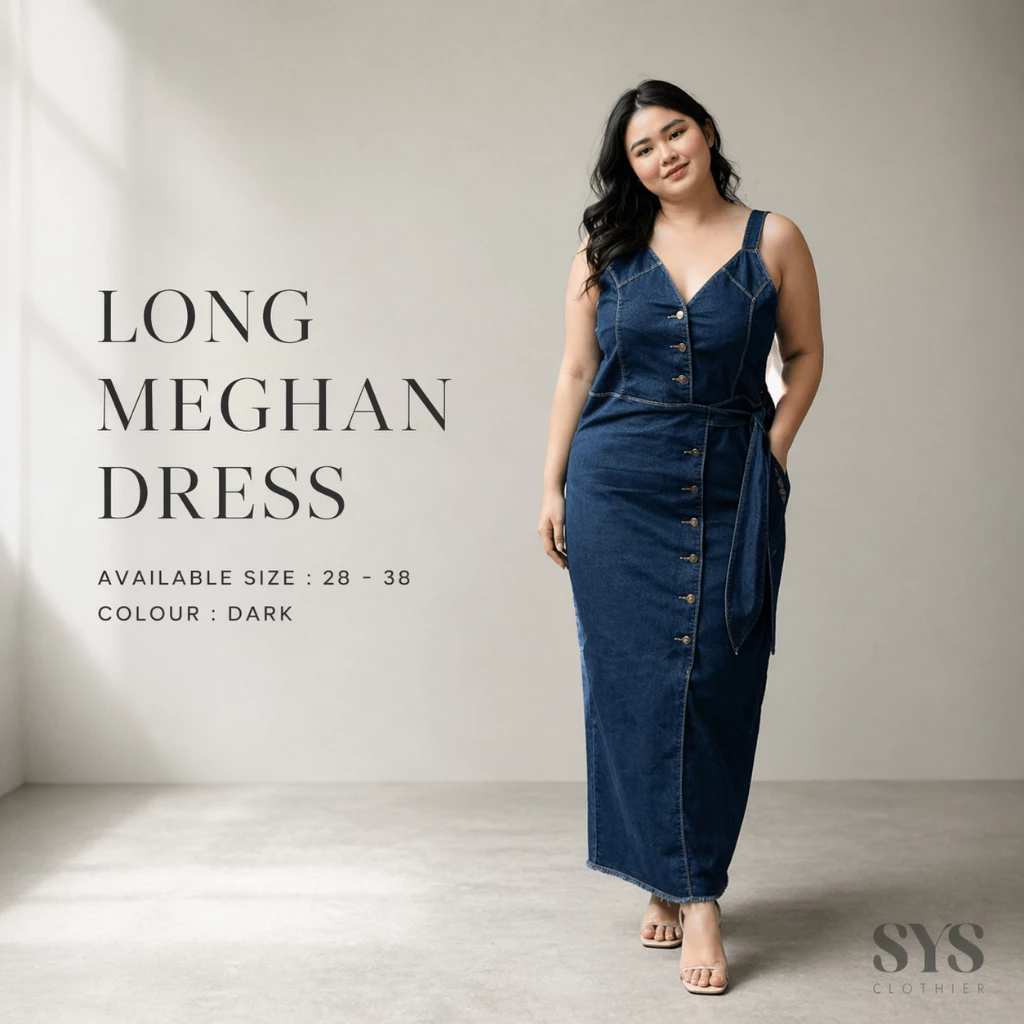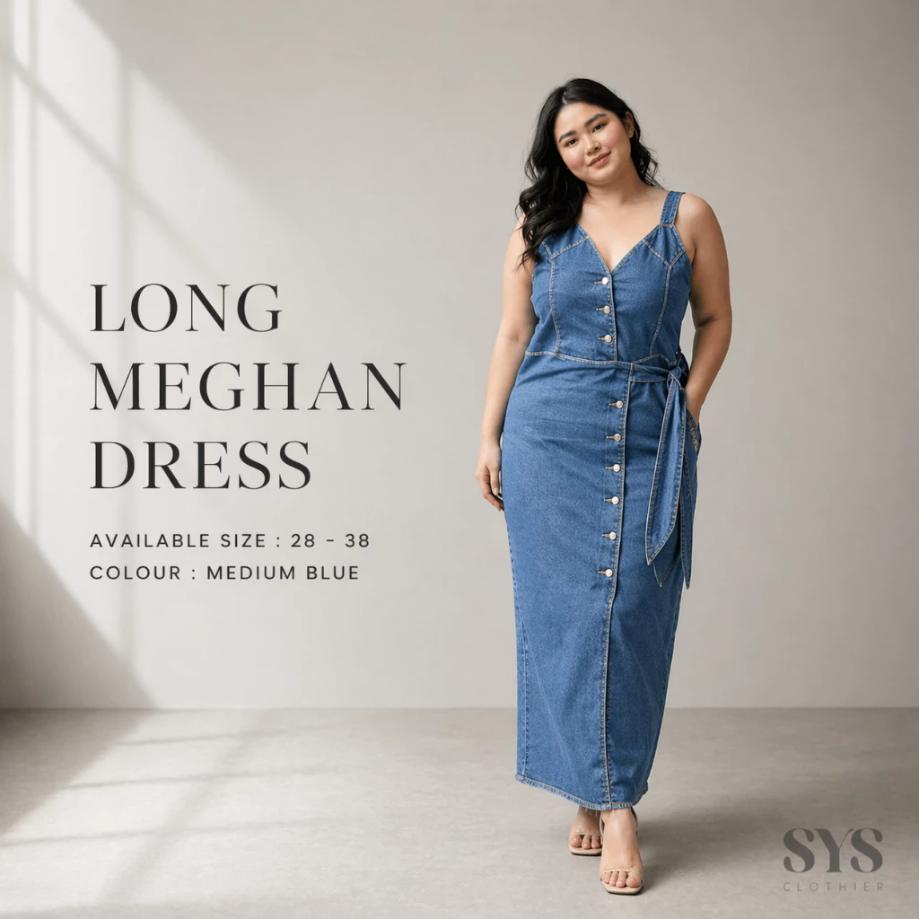Sys Clothier Long Meghan Dress Series Jeans Wanita l Denim Midi Maxi Premium Jumbo (Size 28-38)