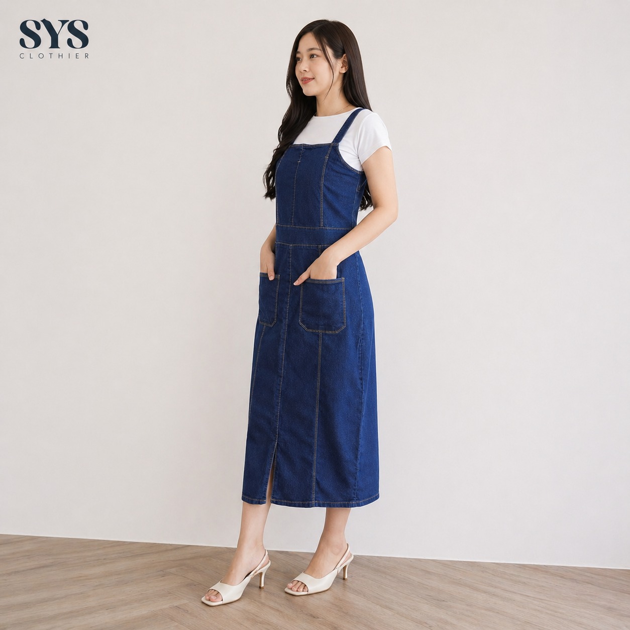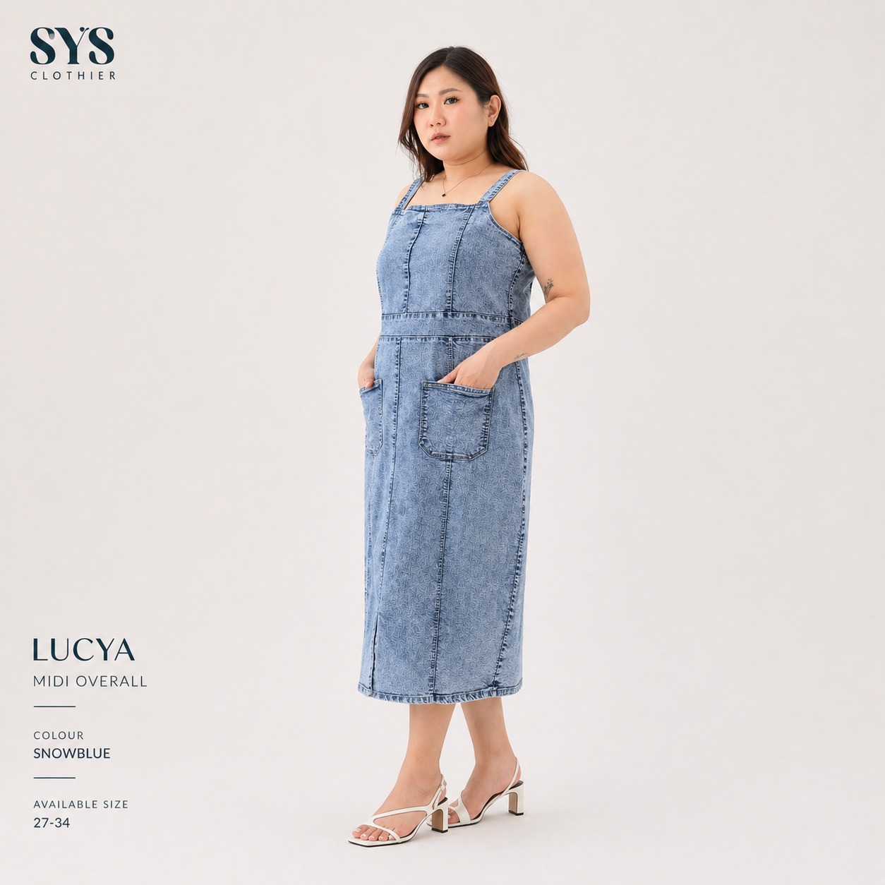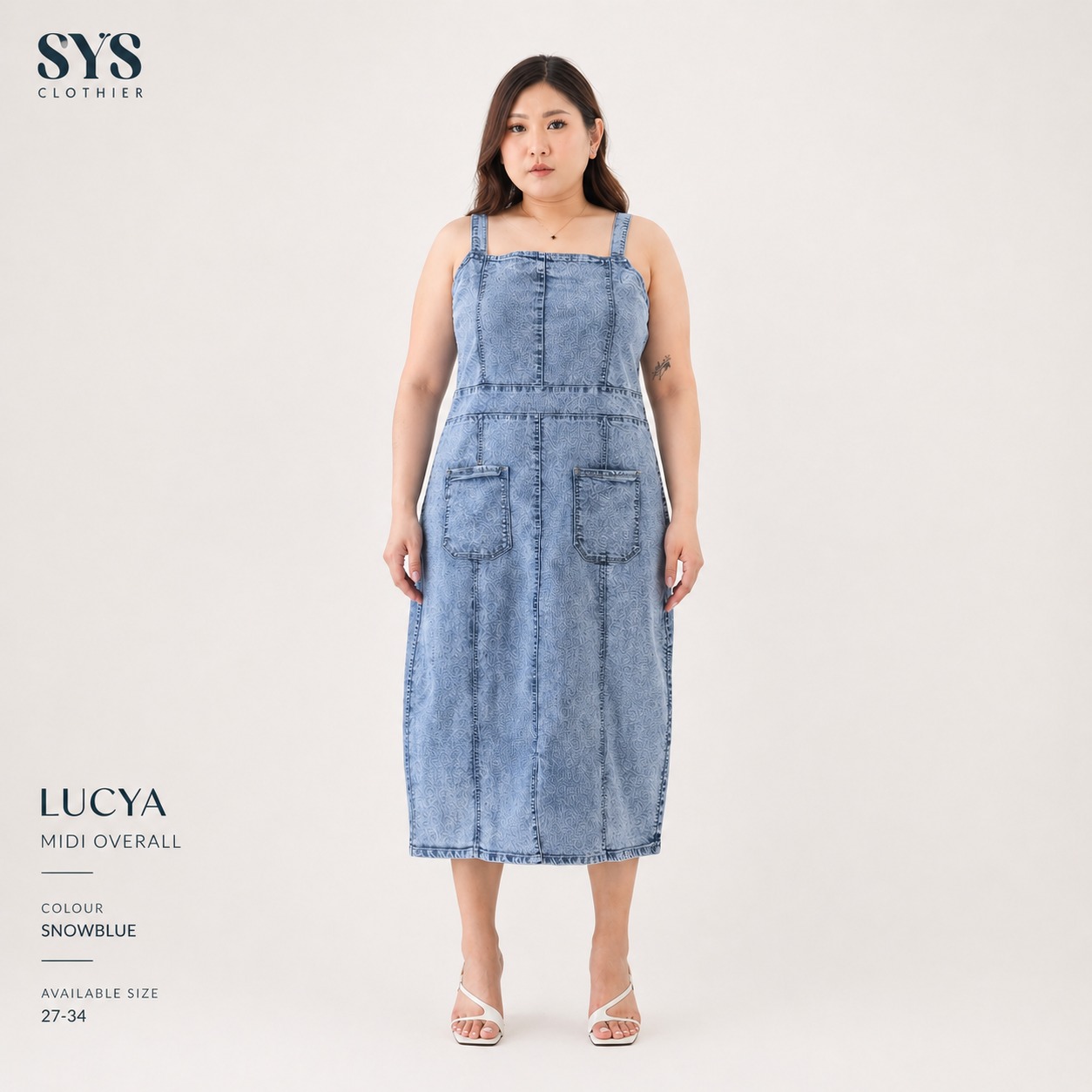 Sys Clothier Lucya Midi Overall Dress Series Jeans Wanita l Denim Midi Maxi Premium Jumbo (Size 28-38)