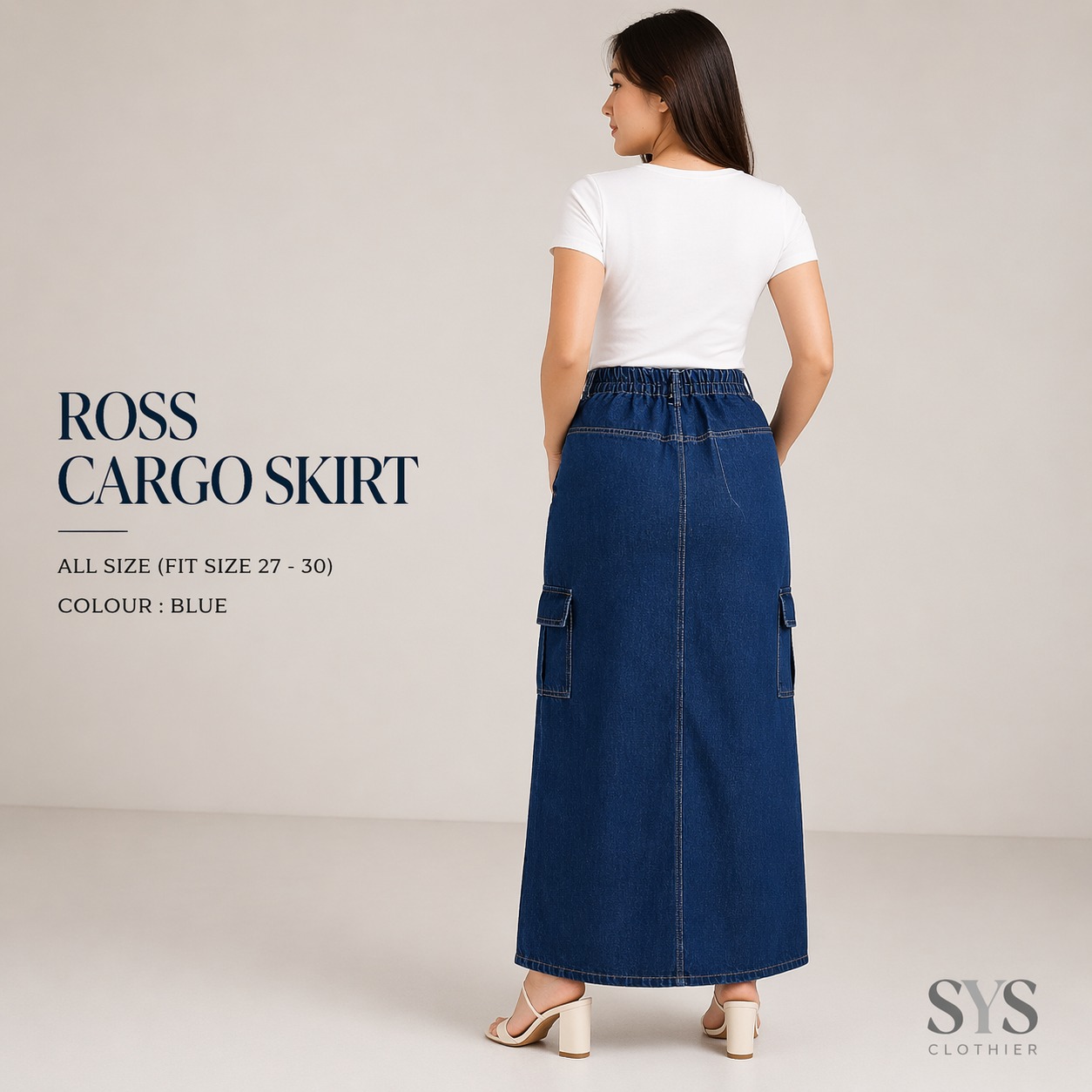SYS Clothier Rok Jeans Wanita Ross Cargo Skirt || High Waist Cargo Denim Skirt All Size (Fit 27-30)