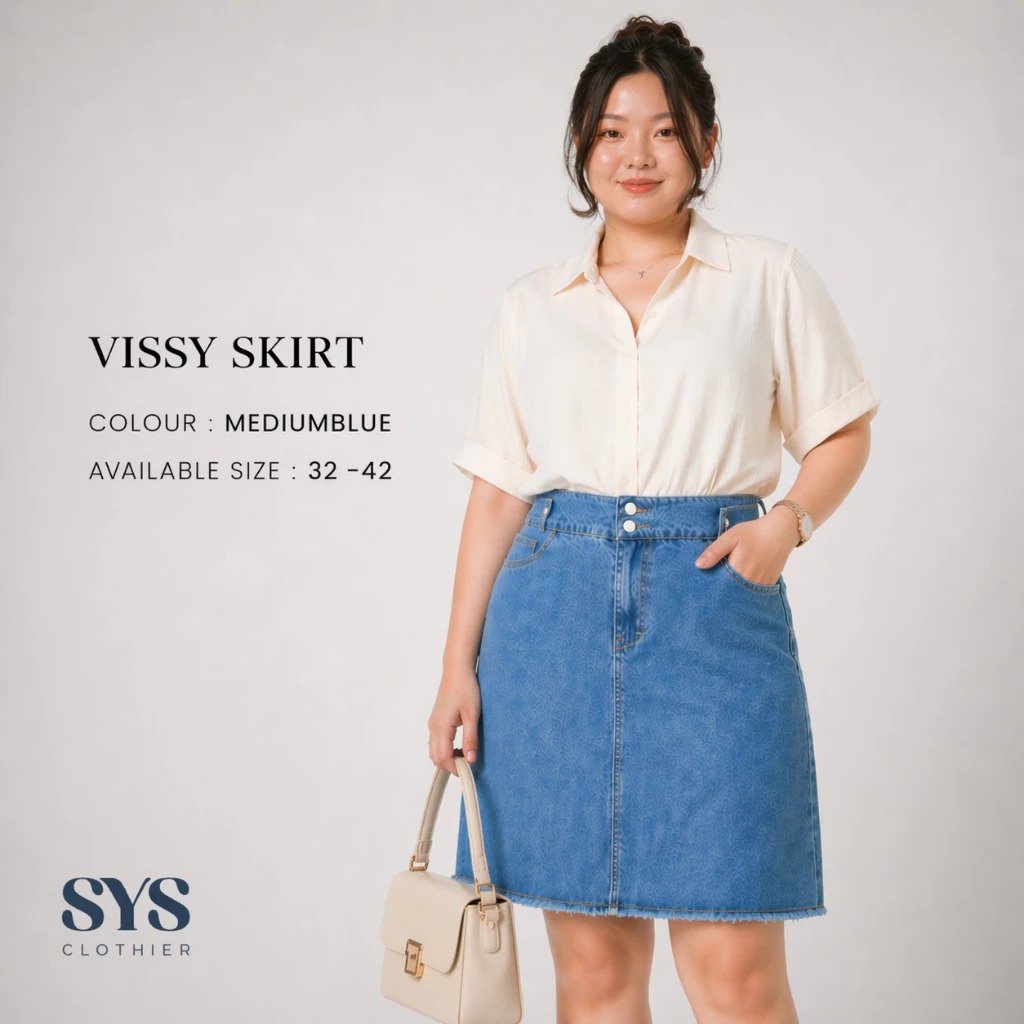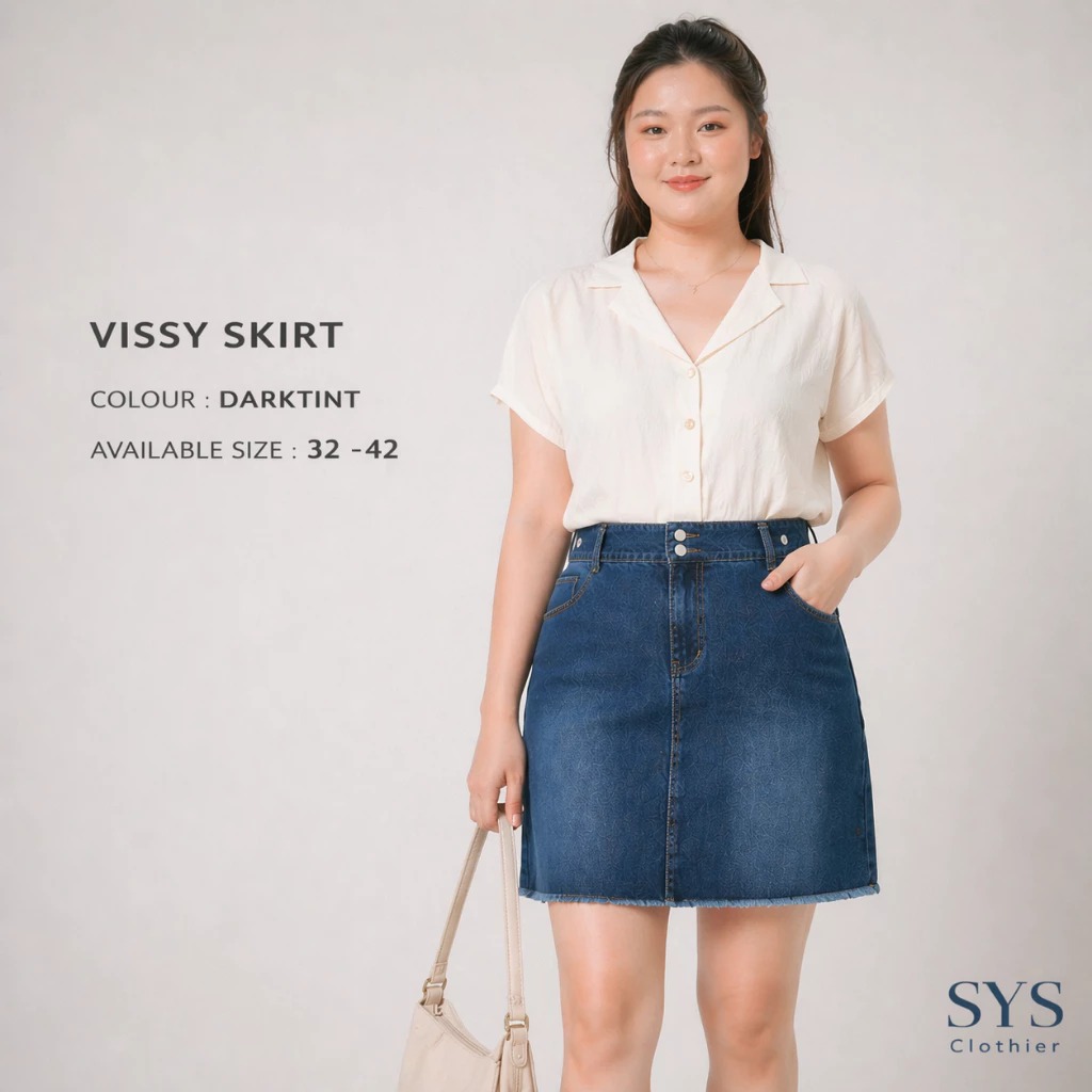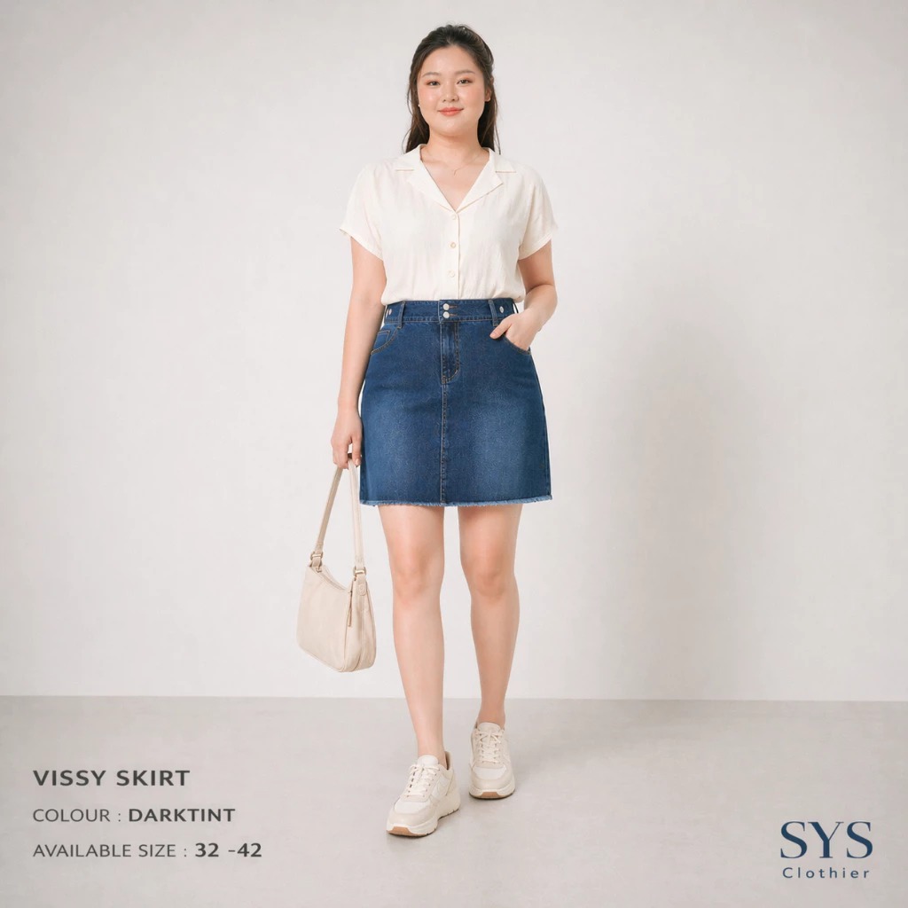 SYS Clothier Vissy Denim Skirt Series I Rok Jeans Wanita A-Line Premium Bigsize (Size 32-42)