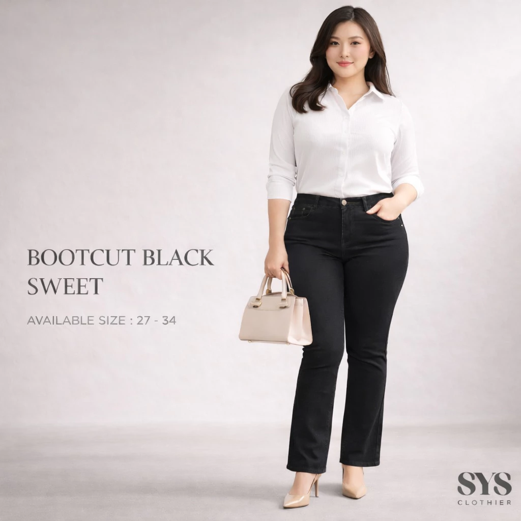 Upgrade tampilan kamu dengan BOOTCUT BLACK SWEET dari SYS Clothier — perpaduan sempurna antara siluet modern dan kenyamanan maksimal.